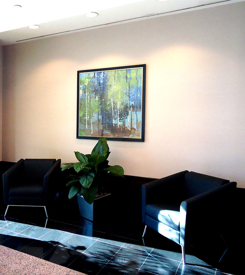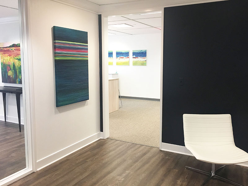 At The Anderson Art Group, we take pride in our ability to collaborate with our corporate clients to ensure that the hand-selected artwork meets the businesses individual vision, promotes their brand, and choose locations that enhance and compliment the offices interior design. We offer a wide variety of artwork in every medium (works on paper and canvas, photography, mixed media, glass, sculpture and ceramics) and every genre (abstract, realism, landscapes, cityscapes and florals).